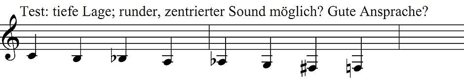 Hauchen Sie hohe und tiefe Töne ohne Anstoß an und testen Sie das Einschwingverhalten des Instrumentes. Sehr wichtig!